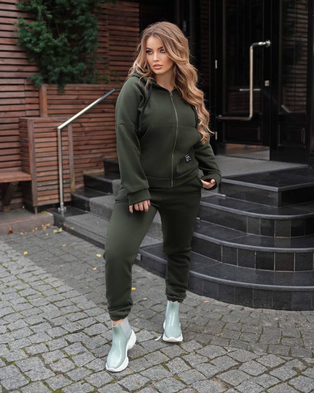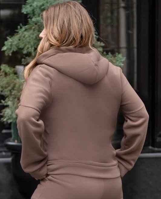 Кофта на змійці, кишеня дуже зручна - кенгуру, прикрашена нашивкою. Штани стильні, висока посадка, на резинці, є кишені, знизу резинка.
